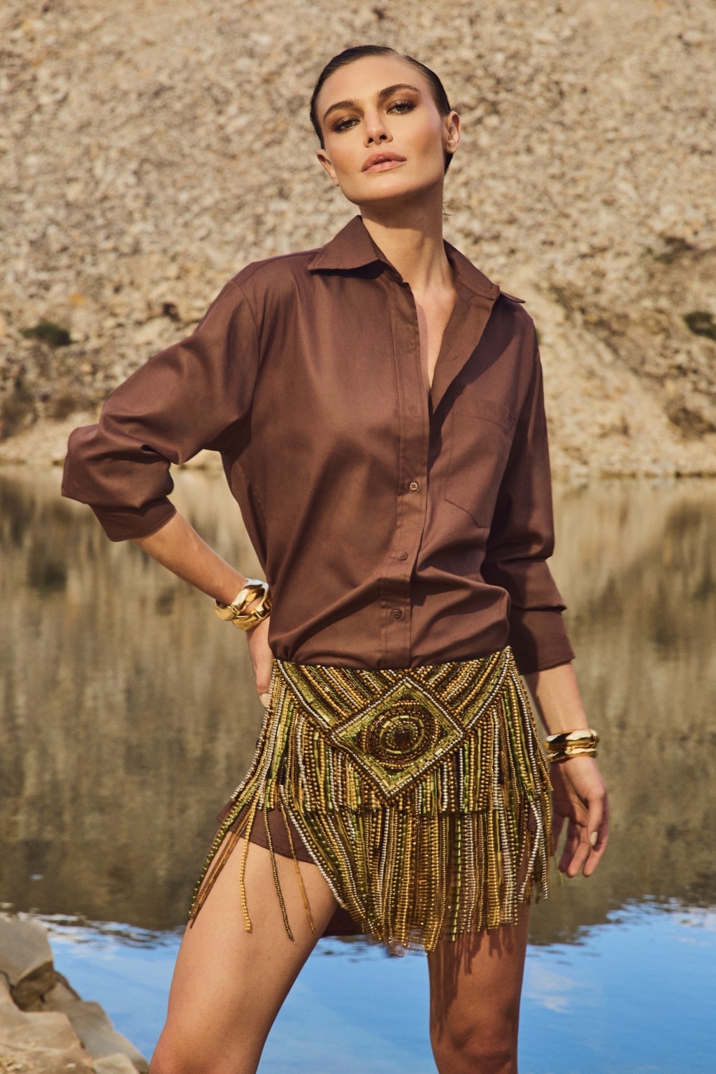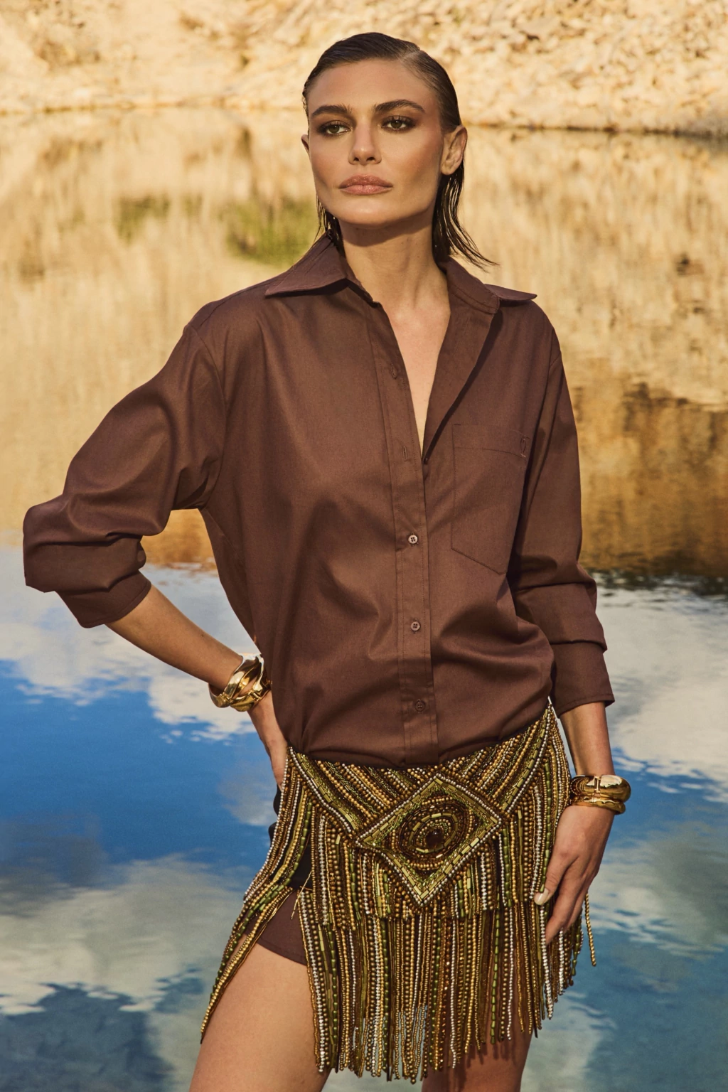 The Lina Cotton Shirt is a must-have piece that adapts effortlessly to multiple looks, from formal to casual. Its oversized cut with elongated length delivers sophistication in an uncomplicated way, combining comfort, lightness, and style. A standout detail is the unique cuffs, featuring a long, elegant cut. Button-up closure. Composition: 100% Cotton.