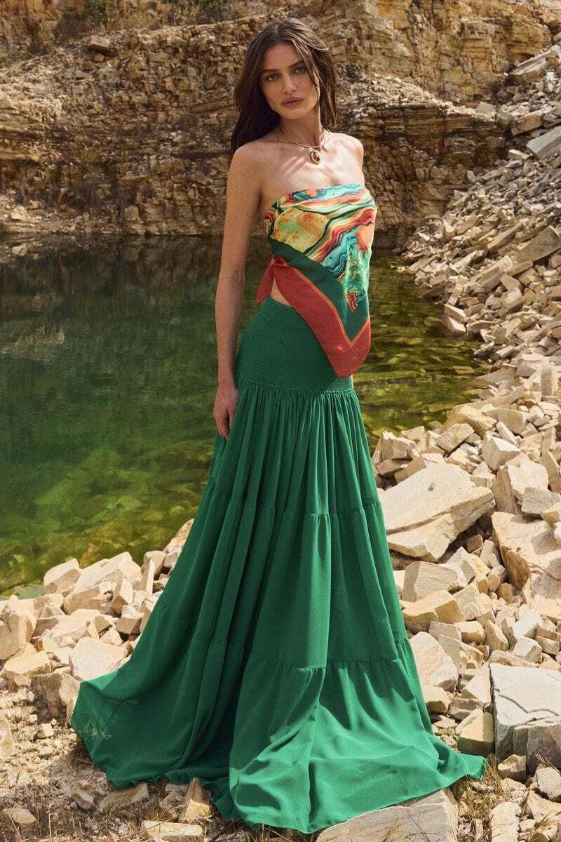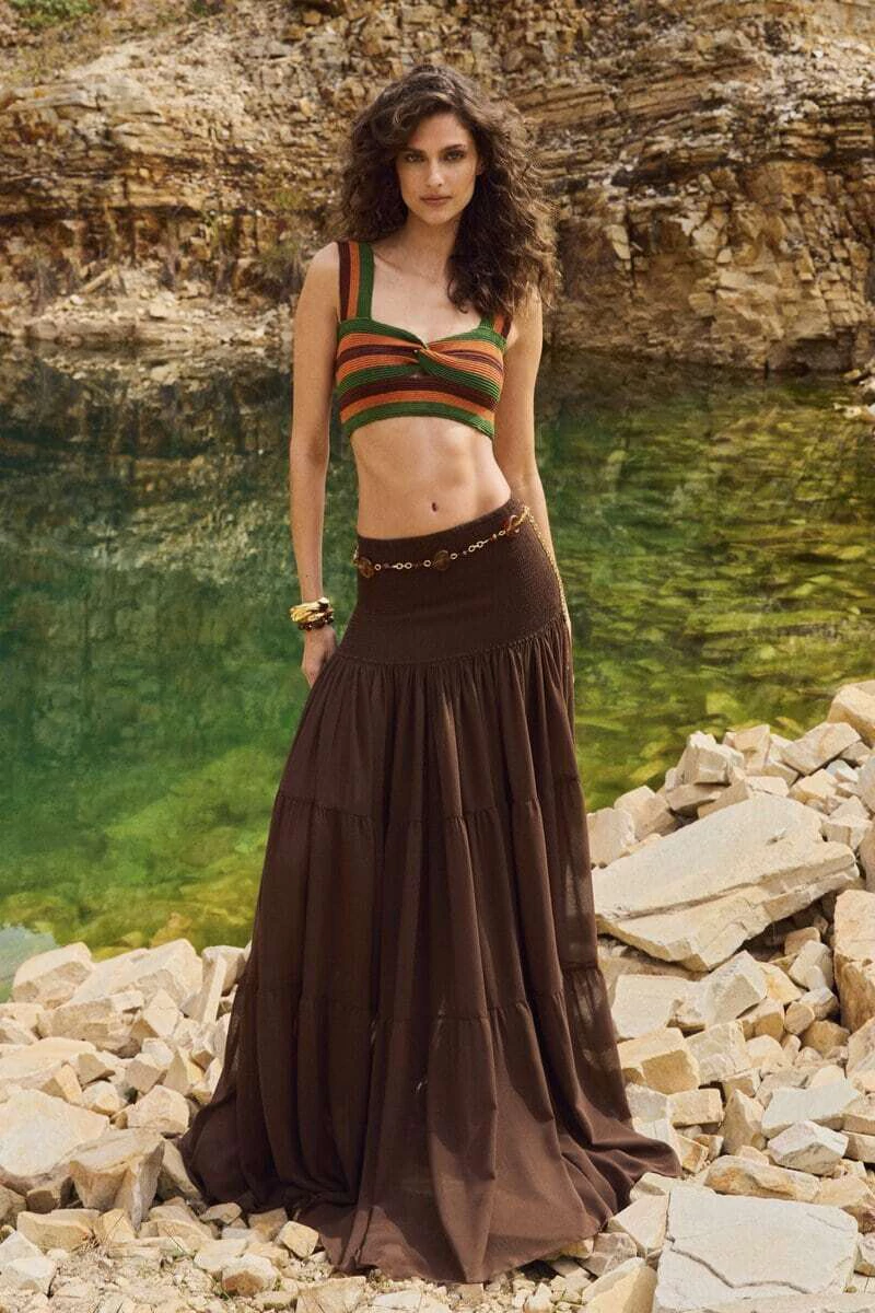 The Riviera Skirt is a versatile and captivating piece—perfect for special occasions, travel, or moments that call for effortless elegance. Its smocked waistband provides gentle elasticity, allowing it to adapt beautifully to the body while highlighting the silhouette with comfort and grace. The long, flowy design adds fluid movement and lightness, creating an impactful and sophisticated look. No closure.