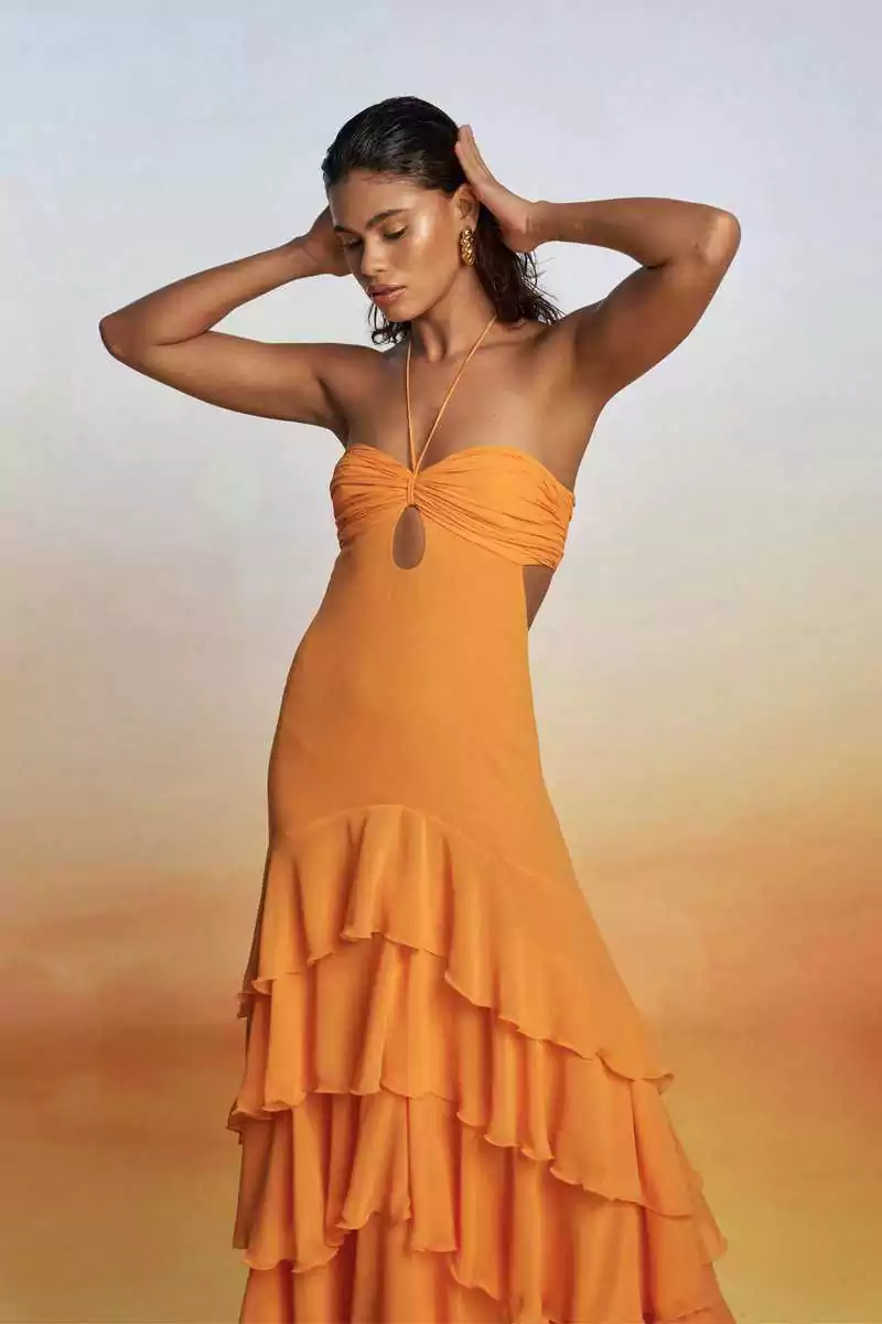 O Vestido Orianne é a combinação perfeita de elegância e energia vibrante. Com um design envolvente, este vestido foi criado para momentos inesquecíveis, destacando-se pelo charme de seus detalhes e pela leveza de seu caimento. O busto estruturado com torção adiciona delicadeza e estilo, enquanto a amarração no pescoço oferece suporte e um toque refinado. A grande estrela deste vestido é a saia com camadas de babados, que cria movimento fluido e dinâmico, trazendo feminilidade e sofisticação ao look. Na deslumbrante cor laranja, o Vestido Orianne irradia vivacidade, sendo a escolha ideal para festas, eventos ao ar livre ou ocasiões especiais que pedem uma peça marcante e cheia de personalidade.