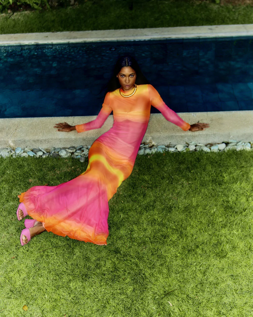 Vestido Valentina em tule manga longa, estampa exclusiva,