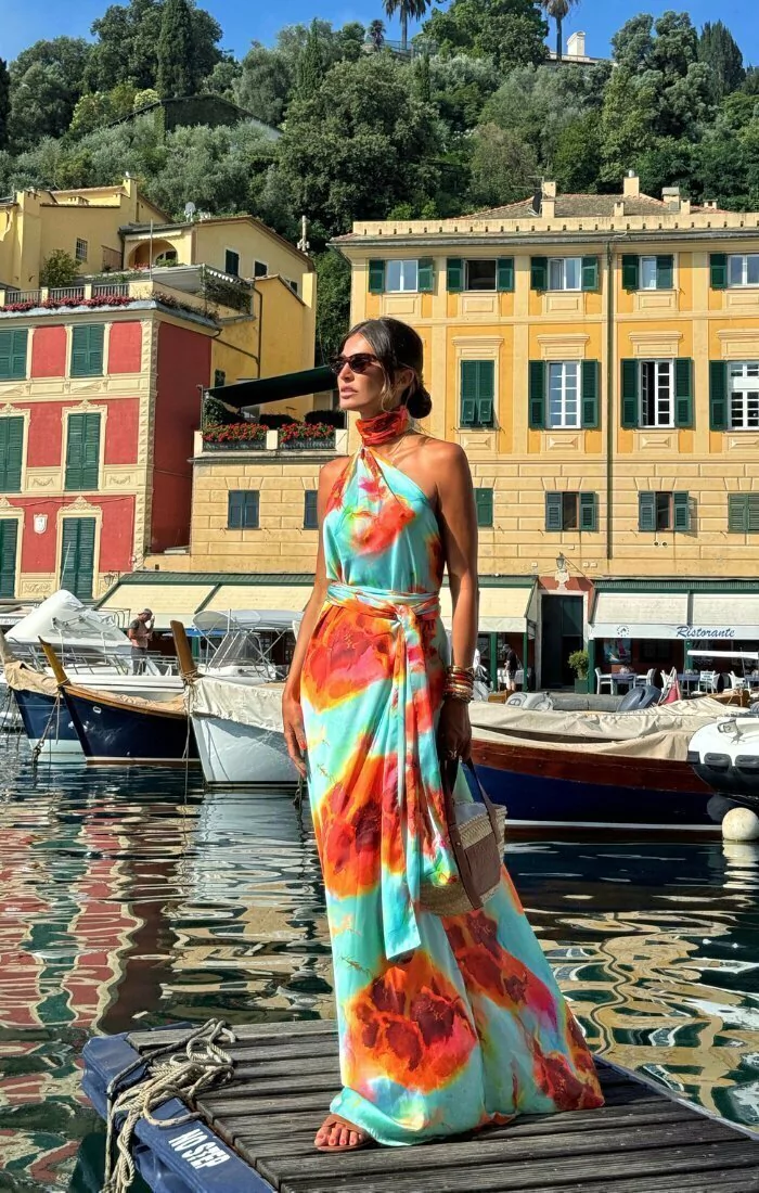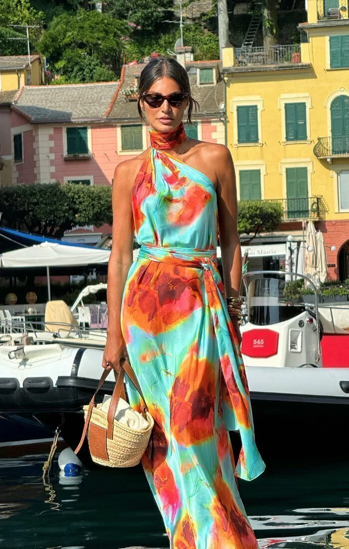 \n\nO Vestido Verona Tirreno é a perfeita combinação de sofisticação e leveza, ideal para ocasiões que pedem um look refinado e atemporal. Confeccionado em cetim com toque de seda, o vestido oferece um caimento impecável e um brilho sutil que eleva a elegância da peça. Com um design minimalista e moderno, o vestido apresenta um decote assimétrico com gola alta e fechamento por ganchos na gola. As costas abertas adicionam delicadeza ao visual, enquanto a fluidez do tecido proporciona um movimento leve. Acompanha faixa opcional para acinturar a silhueta.\n\n